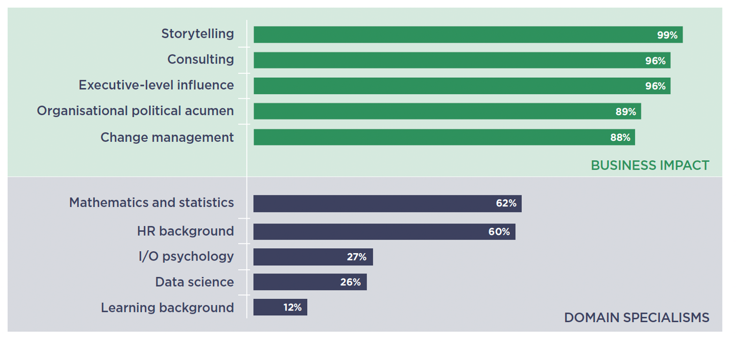 Figure 3: The top skills that the people analytics leader requires to have credibility and build and deliver a programme of upskilling HR to be data-literate (Source: Insight222 Upskilling the HR Profession: Building Data Literacy at Scale)